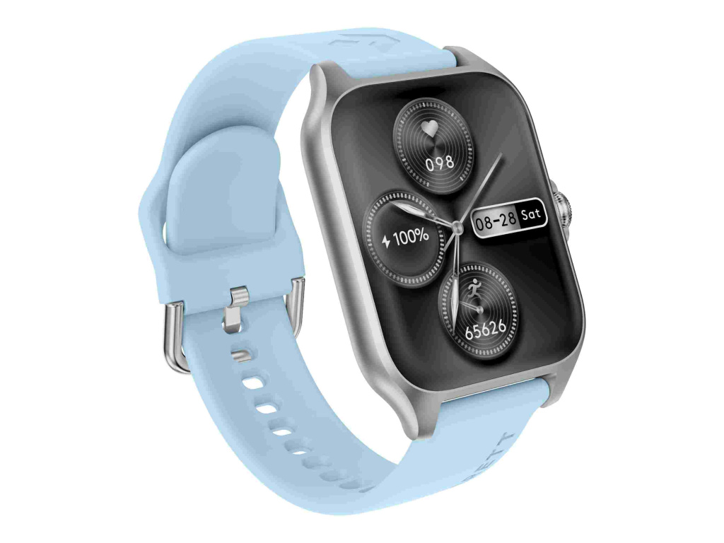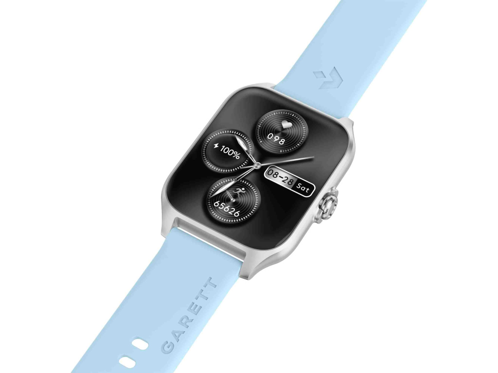 - Sada obsahuje: chytré hodinky Garett, modrý silikonový řemínek, stříbrný kovový řemínek, nabíjecí kabel USB (bez zástrčky), příručku QSG