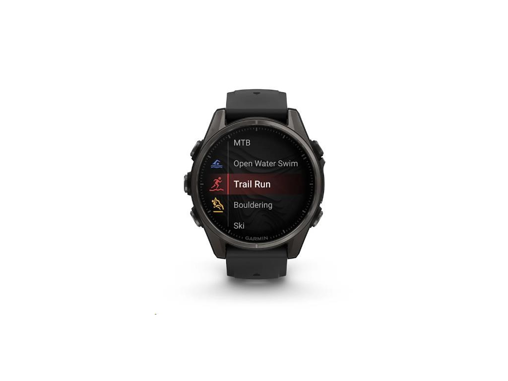 Garmin fenix® 8 – 43 mm, AMOLED, Sapphire, Carbon grey DLC titanium, Black / Pebble grey se silikonovým řemínkem, EU, 010-02903-21
