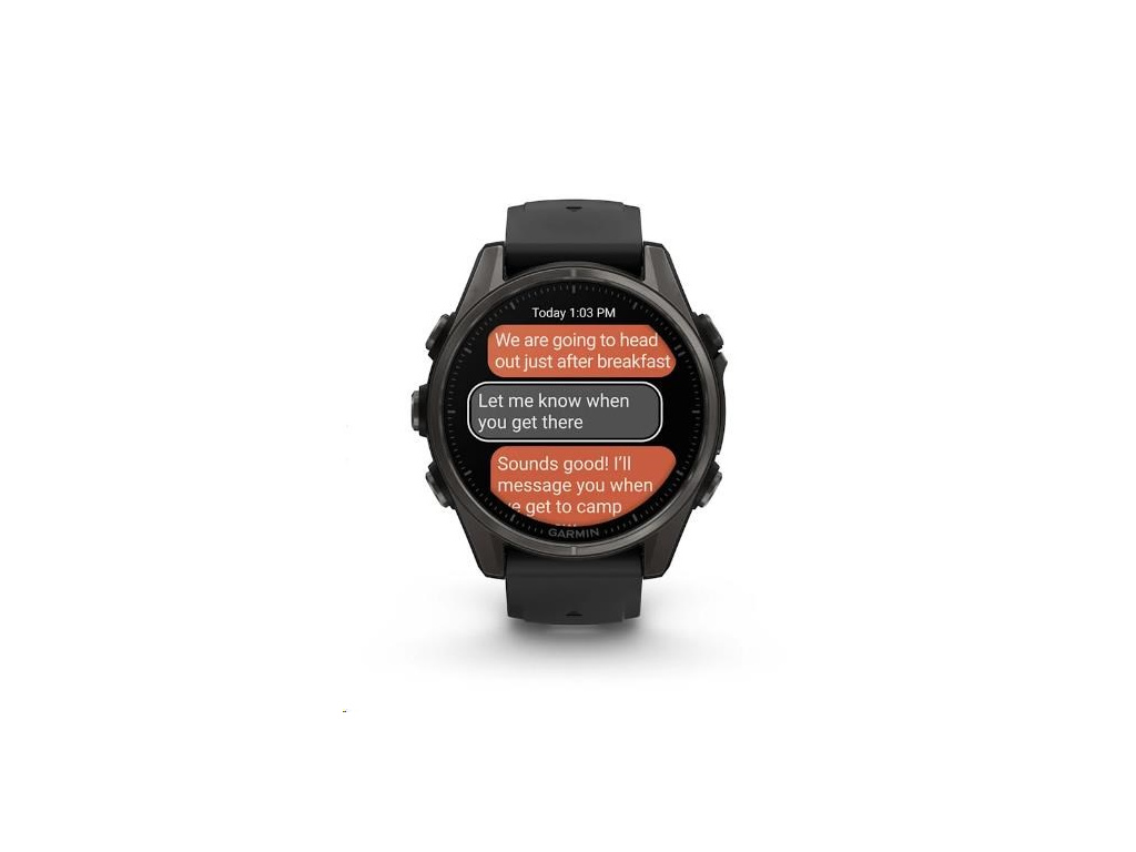 Na hodinkách můžete přijímat e-maily, textové zprávy a upozornění na spárovaném telefonu Android nebo Apple. Hodinky rovněž podporují platby Garmin Pay, abyste se při svých dobrodružstvích mohli vydat kamkoliv a nestarat se o to, že jste něco zapomněli doma. S hodinkami Garmin fénix 8 máte totiž vždy všechno důležité po ruce - na svém zápěstí.