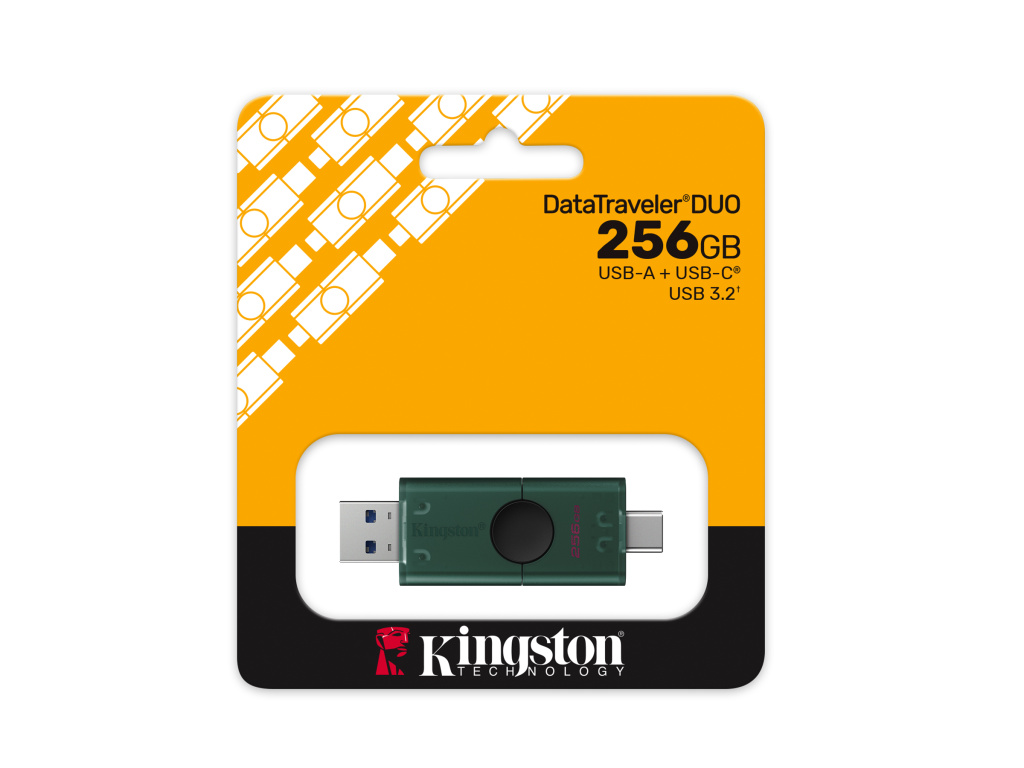 Kingston® DataTraveler® Duo je vybaven dvěma USB konektory, které fungují jak s porty USB typu A, tak USB typu C, a zajišťují tak maximální kompatibilitu. Inovativní design s dvojitým pohyblivým krytem dodává disku stylový a praktický vzhled a zabraňuje ztrátě krytu. Díky kapacitě až 256 GB2 můžete s DT Duo snadno přistupovat k dokumentům, fotografiím, videím, hudbě a dalším souborům a přenášet je mezi zařízeními USB-A a USB-C. Na produkt se vztahuje pětiletá omezená záruka, bezplatná technická podpora a legendární spolehlivost Kingston®.Rozhraní: USB Type-A a USB Type-C