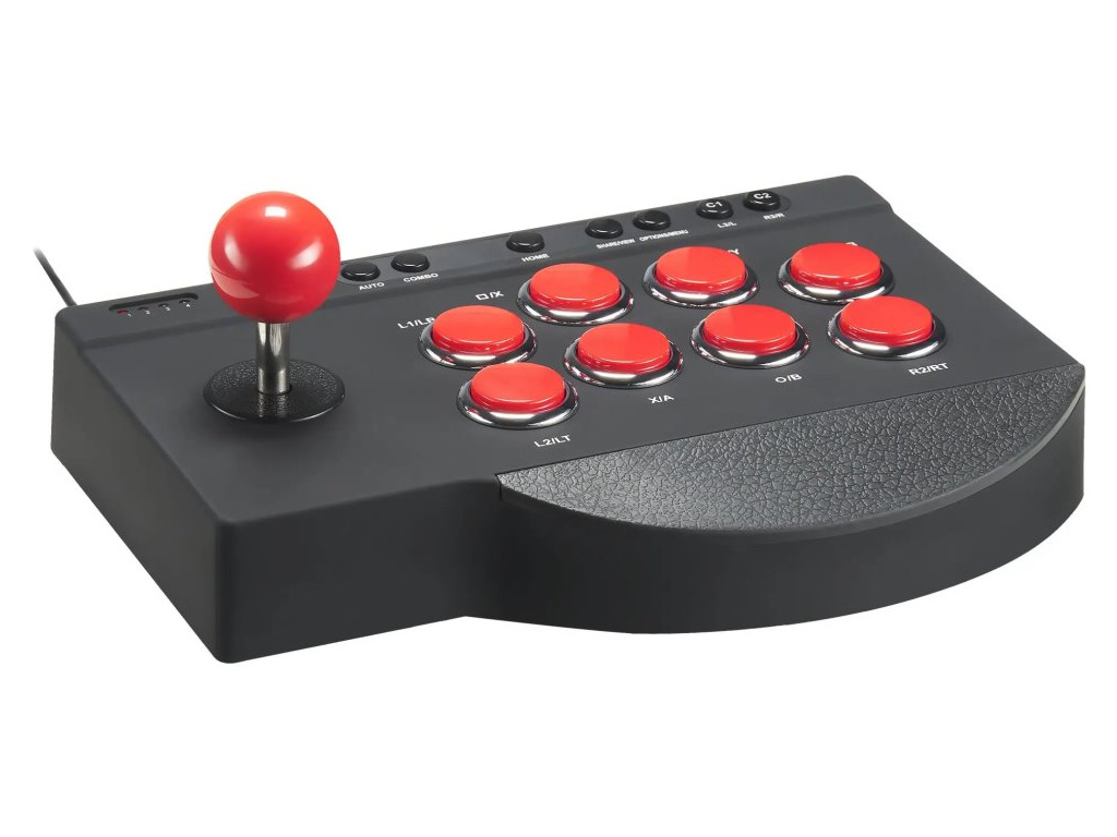 Herní ovladač Arcade Stick je dokonalou volbou pro milovníky bojových her. Disponuje osmi akčními tlačítky s listovými spínači, které nabízejí odolnost i citlivost. Dále je vybaven funkcí Auto pro rychlé opakované údery a funkcí Combo pro naprogramované speciální údery a pohyby. Nechybí ani robustní ocelový joystick s mikrospínačovými kontakty. Povrchová úprava „soft touch“ a pogumovaná opěrka zápěstí zajistí optimální herní pohodlí. Silné přísavky a 3m kabel přináší velkou volnost při instalaci.