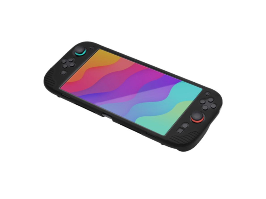 Silikonové pouzdro s rukojetí chránící Nintendo Switch 2 před poškrábáním a s přidanou rukojetí pro bezpečnou manipulaci.