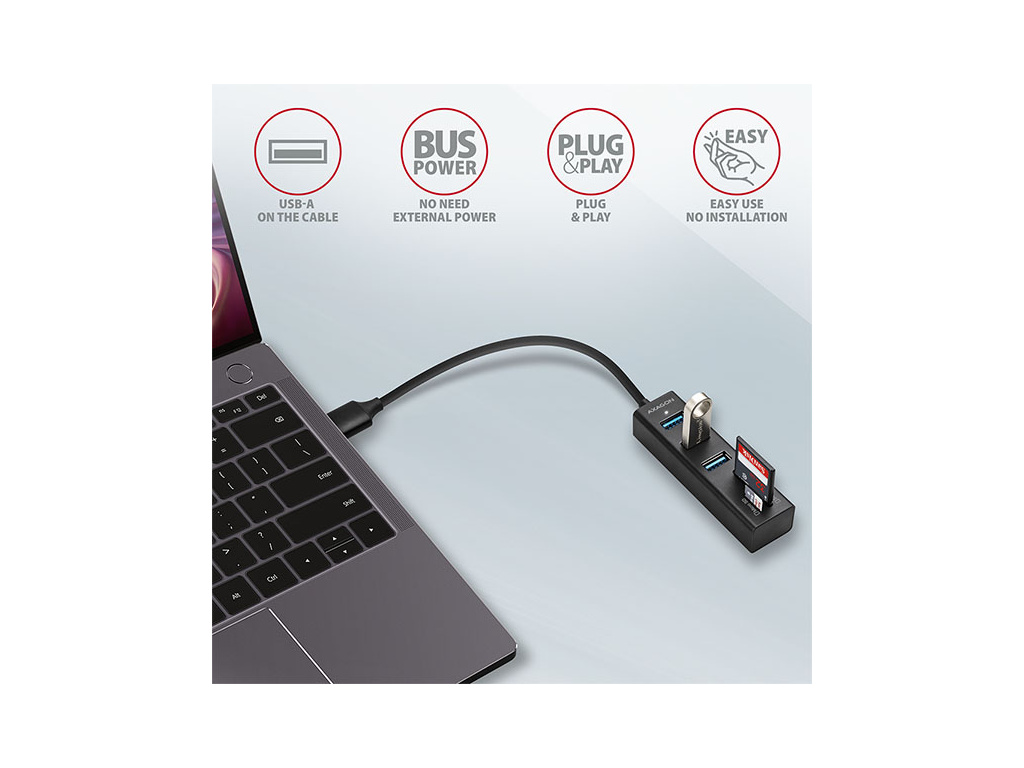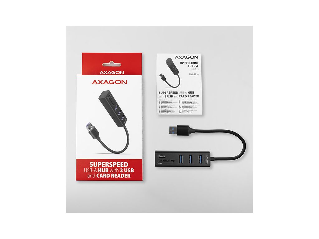 Kovový USB 3.2 Gen 1 (USB 3.0) multi-port hubAXAGON HMA-CR3A nejen připojí k notebooku nebo počítači až