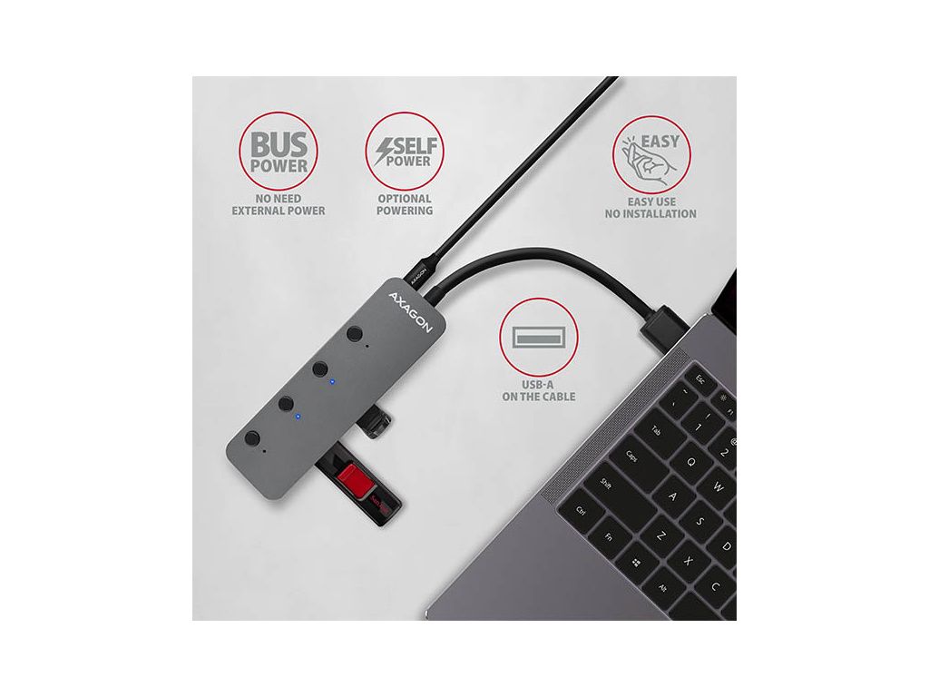 Kovový USB 3.2 Gen 1 (USB 3.0) hubAXAGON HUE-MSA nejen připojí k notebooku nebo počítači až