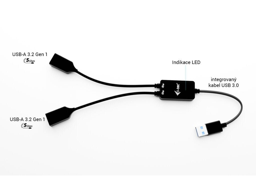 i-tec USB-A Cable HUB 2 port (2x USB-A), U3CBLHUB2A