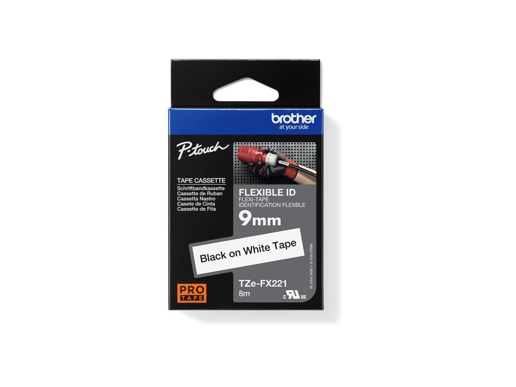 BROTHER TZEFX221 - kazeta TZ šířky 9mm, flexibilní páskou TZE-FX221, bílá/černé písmo, TZEFX221