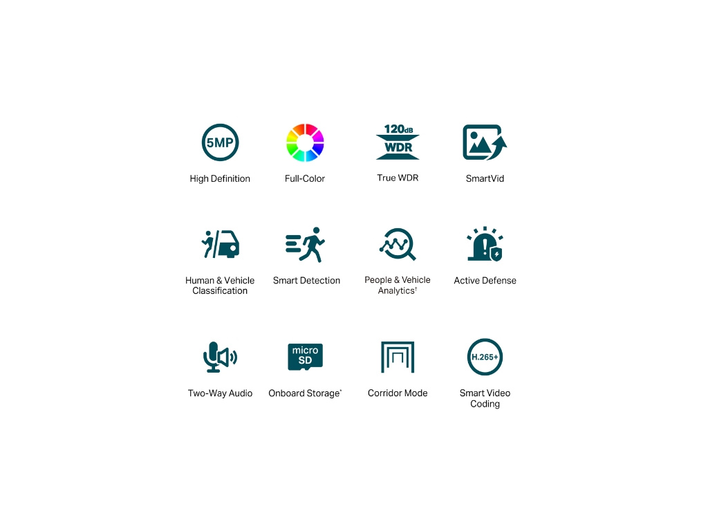 Profesionální technologie VIGI zpracovávají videa a výrazně zlepšují jejich kvalitu, která je pro vaše sledování zásadní, včetně Smart IR, True WDR, 3D DNR a nočního vidění.