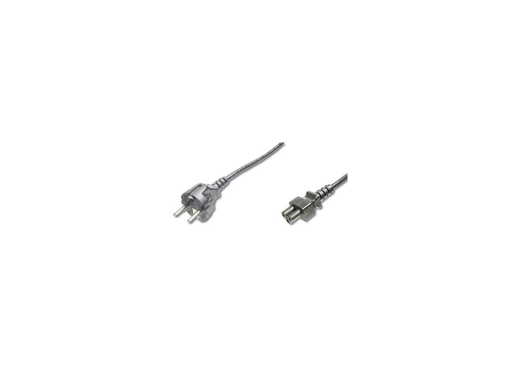 Napájecí kabel v černém provedení pro notebook. Třížilový kabel je zakončený zástrčkou typu ''Mickey mouse'' IEC 320 C5.