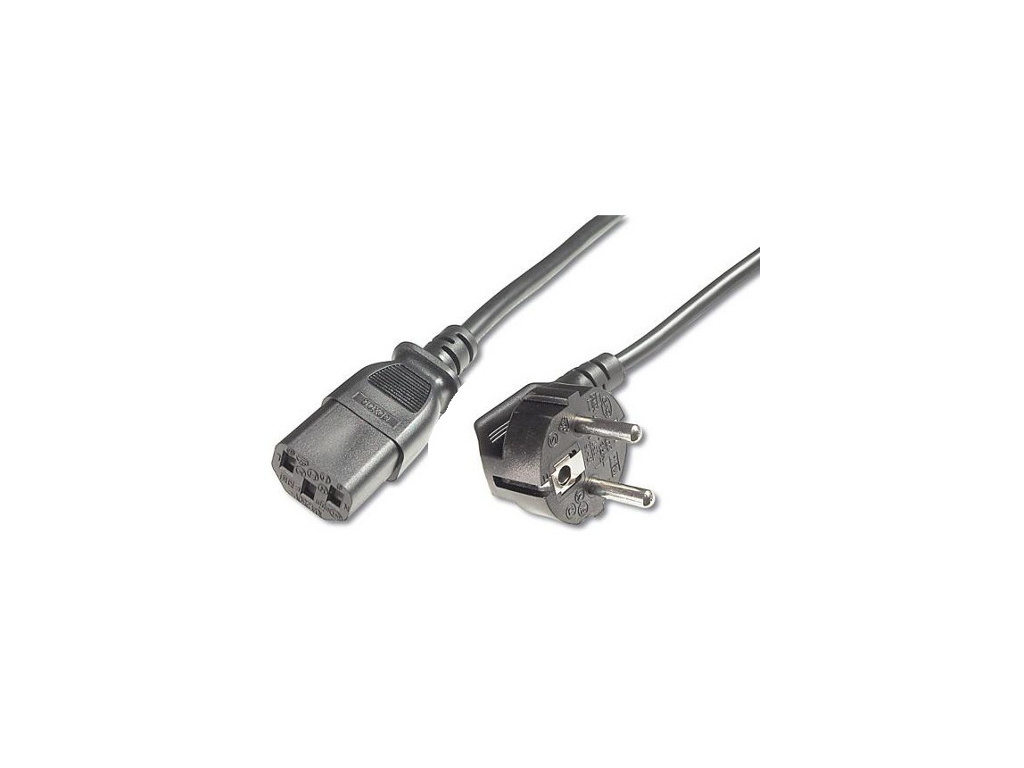 Napájecí kabel v černém provedení pro počítač nebo monitor. Třížilový kabel je zakončený standardní přístrojovou zástrčkou.kabel pro připojení počítače k zásuvce 230 V (220 V)