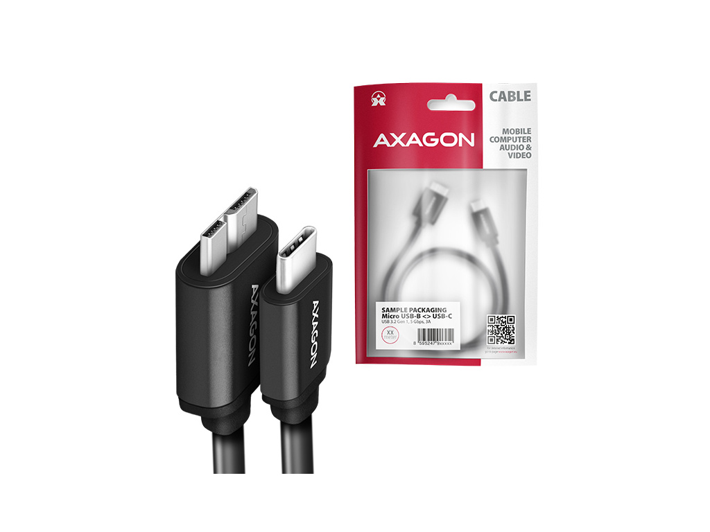 Prémiový propojovací Micro-B USB <-> USB-C datový a napájecí AXAGON BUMM3-CM10AB SPEED USB 3.0 kabel s konektory Micro-B USB male a USB-C male. Kabel je navržen pro rychlé datové přenosy a napájení externích pevných disků a dalších mobilních zařízení. Podporuje přenos dat rychlostí až 5 Gb/s a napájení proudem až 3A.