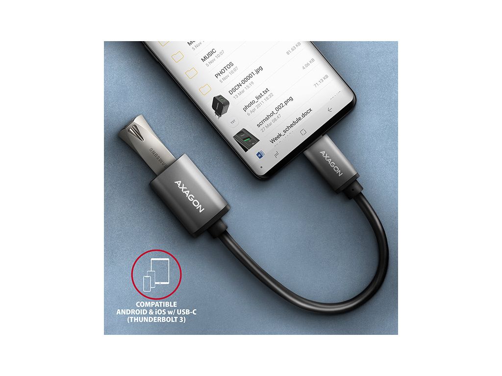 AXAGON RUCM-AFAC, kabelová redukce USB-C (M) <-> USB-A (F), 20cm, USB 3.2 Gen 1, 3A, ALU, RUCM-AFAC