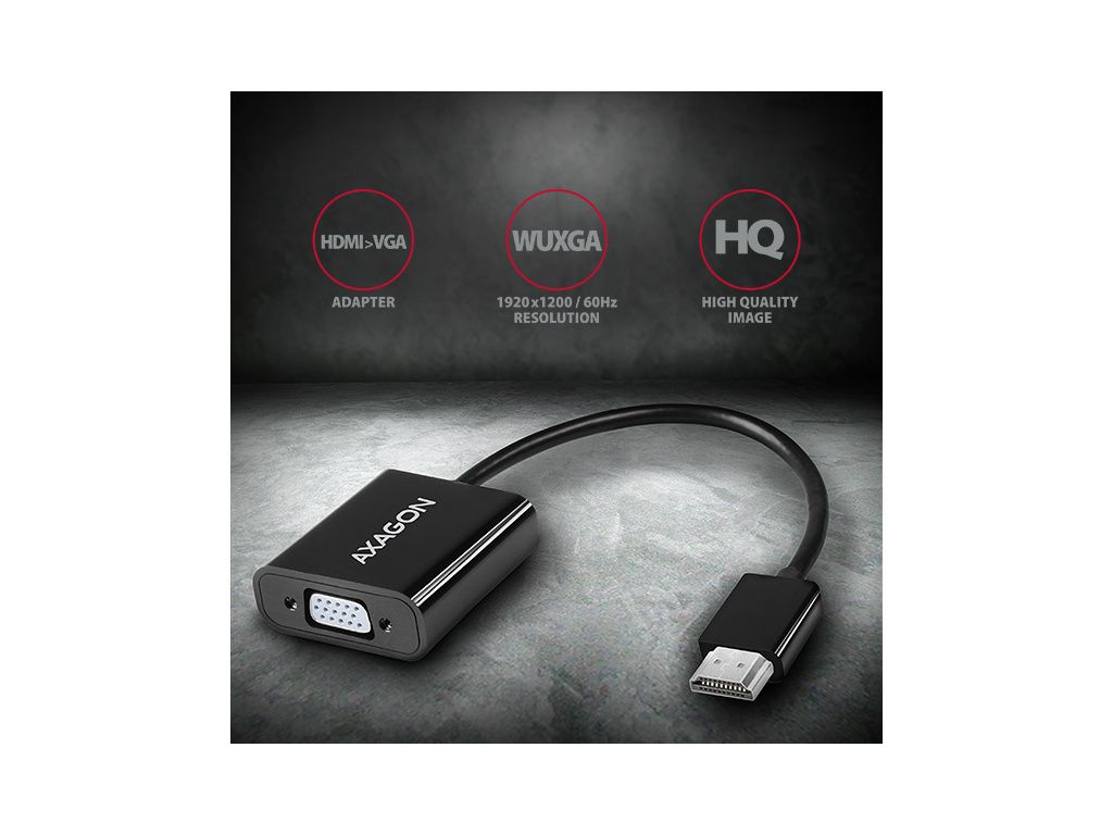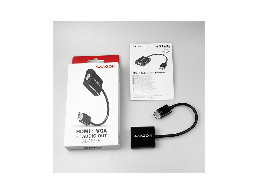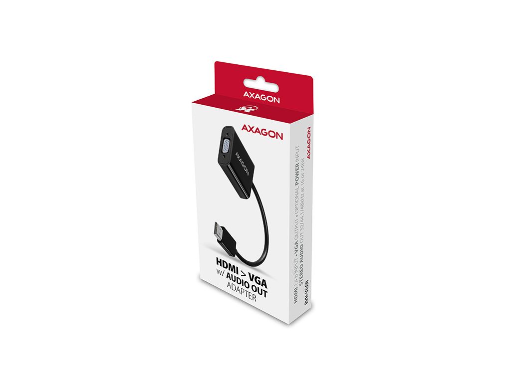 HDMI -> VGA aktivní adaptér AXAGON RVH-VGAN s audio výstupem pro připojení staršího VGA monitoru/TV/projektoru k počítači nebo jinému zařízení s výstupem HDMI. Redukci lze použít i se set-top boxy nebo herními konzolemi Xbox a PlayStation.