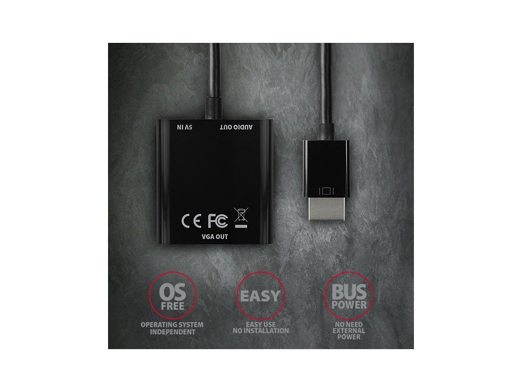 AXAGON RVH-VGAN, HDMI -> VGA redukce / adaptér, FullHD, audio výstup, micro USB nap. konektor, RVH-VGAN