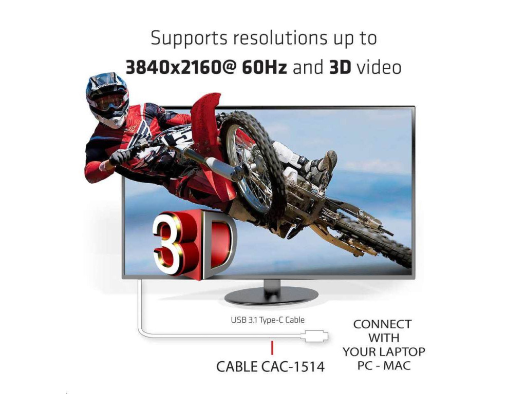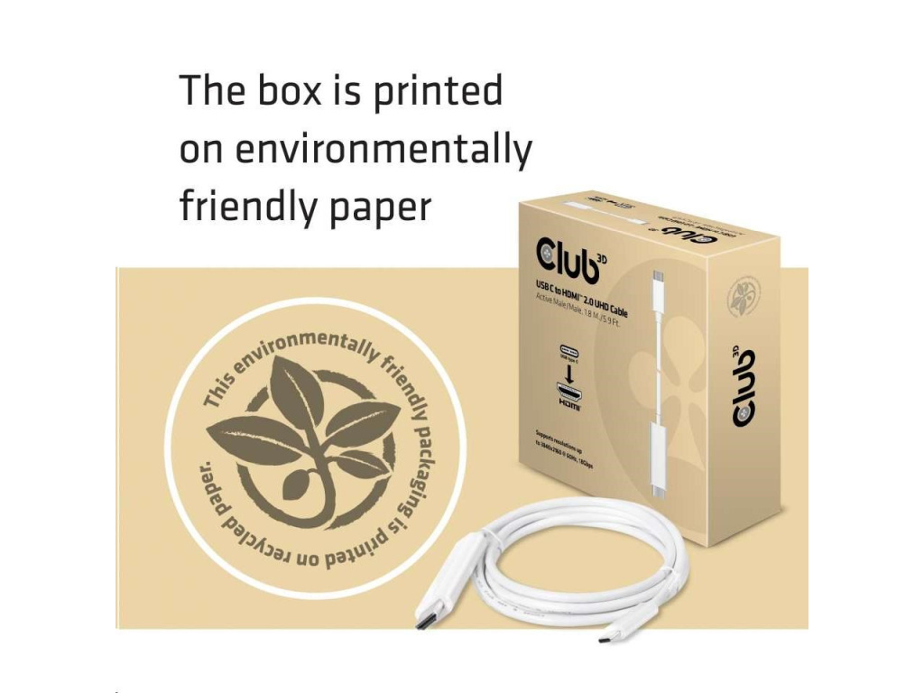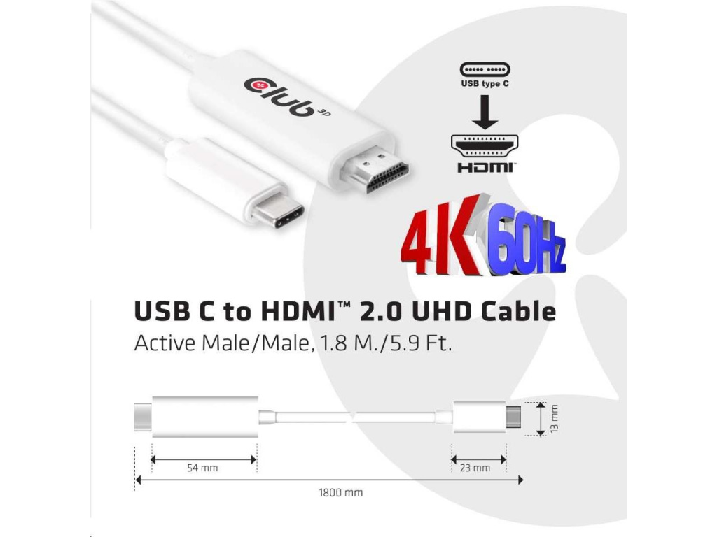 CAC-1514 Club 3D je aktivní převodník signálu HDMI ™. Kabel UHD USB C na HDMI ™ 2.0 je nejjednodušší řešení pro připojení zdrojového zařízení obsahující port USB 3.1 Type C s alternativním režimem DisplayPort ™ k monitoru UHD monitoru, televizoru nebo projektoru s podporou rozhraní HDMI ™ 2.0. Adaptér je napájen pomocí portu USB C a nevyžaduje tak žádné externí napájení.