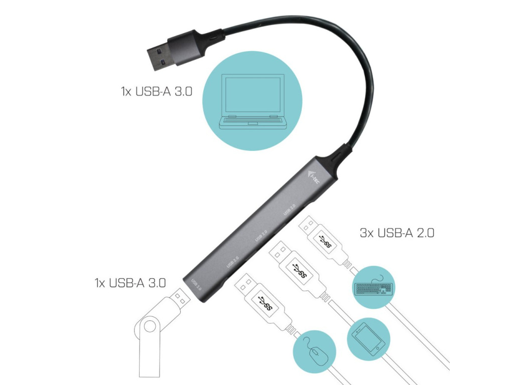 i-tec USB 3.0 HUB Metal 1x USB 3.0 + 3x USB 2.0, U3HUBMETALMINI4