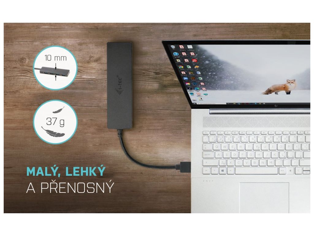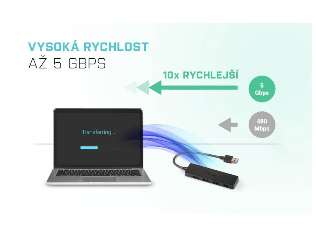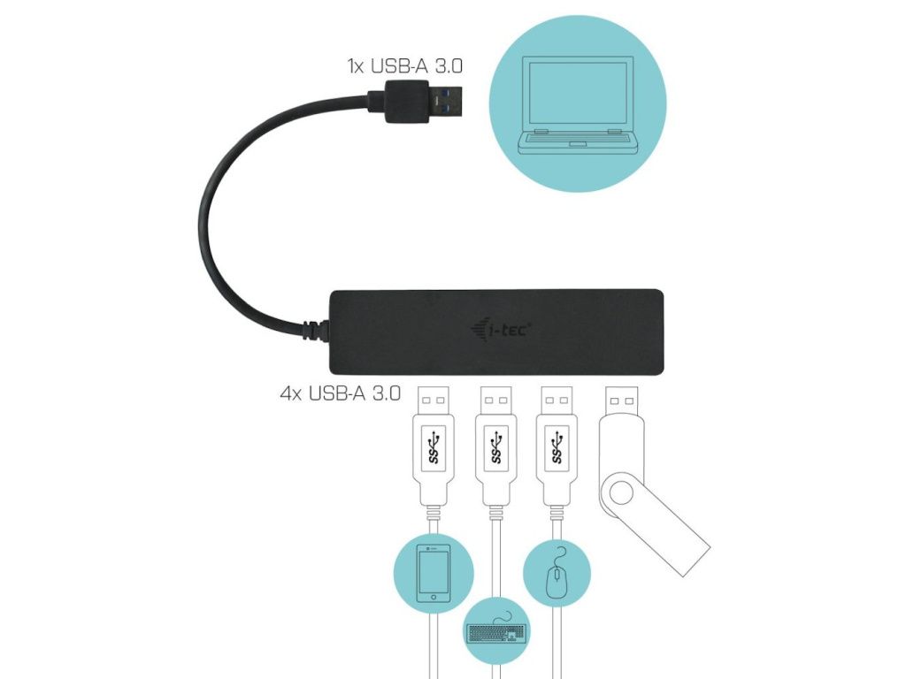 I-TEC Slim USB 3.0 na 4× USB 3.0I-TEC USB 3.0 HUB je ideálním doplňkem pro každého, kdo má ve svém notebooku, ultrabooku nebo PC nedostatek USB portů a je nucen neustále připojovat a odpojovat svá oblíbená USB zařízení, jako jsou flash disky, mobilní telefony, tablety, digitální fotoaparáty, MP3 přehrávače, tiskárny apod.