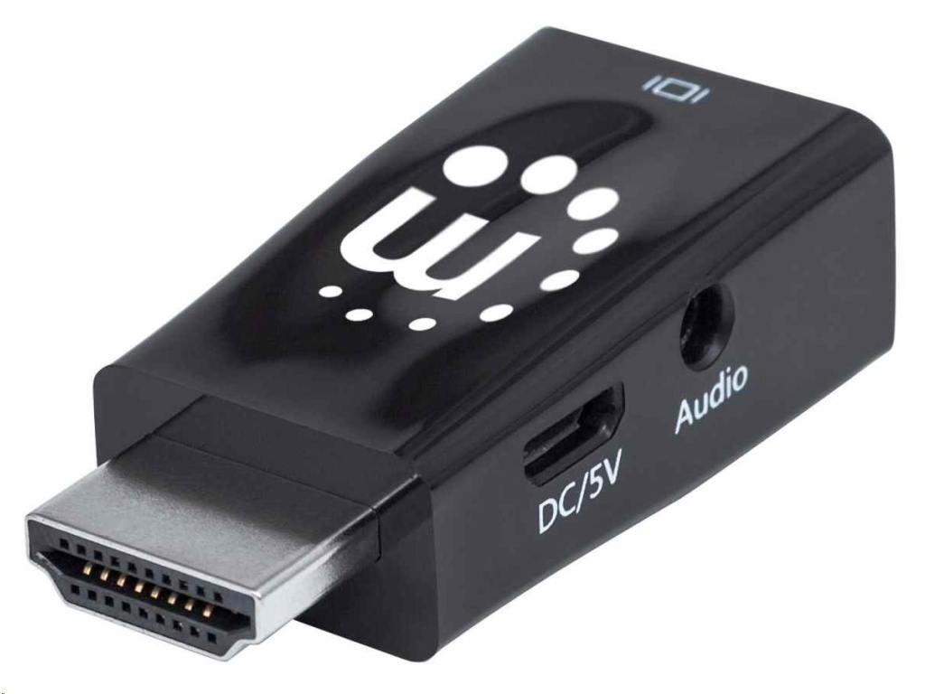 Mikroprevodník Manhattan HDMI na VGA umožňuje rýchle, jednoduché a pohodlné prepojenie medzi novším stolným počítačom, notebookom alebo iným zdrojom médií vybaveným rozhraním HDMI a existujúcim monitorom VGA, projektorom alebo iným zobrazovacím zariadením. Mikroprevodník Manhattan HDMI na VGA sa ľahko a rýchlo inštaluje a nevyžaduje si zložitú konfiguráciu ani nastavenie. Tento prevodník pomáha predĺžiť životnosť starších zobrazovacích zariadení VGA, aby ste mohli čo najlepšie využiť svoju investíciu a plne využiť jej hodnotu. Mikroprevodník Manhattan HDMI na VGA ponúka úsporné a spoľahlivé riešenie s nízkou spotrebou energie, takže používatelia môžu prejsť na šírku pásma HDMI, rozlíšenie, technológiu Deep Color a ďalšie funkcie bez toho, aby museli prechádzať na novšie a drahšie monitory a projektory. Jeho integrovaná konštrukcia typu "všetko v jednom" pomáha dosiahnuť kompaktné, integrované riešenie, ktoré eliminuje zbytočné káble, spleť a neporiadok, aby boli inštalácie a pracovné priestory čisté a usporiadané. Jeho 3.5 mm stereo port umožňuje prevodníku prenášať zvuk do externého zvukového zariadenia a jeho port Micro-USB umožňuje v prípade potreby dodatočné napájanie.