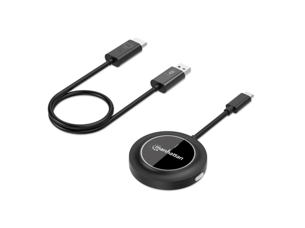 Dvoudílná sada s přijímačem HDMI a vysílačem USB-C pro bezdrátové zobrazení videosignálu z notebooku/tabletu/smartphonu na televizoru nebo projektoru s rozhraním HDMI, černá barva