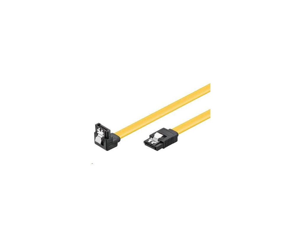 SATA 3.0 datový kabel s kovovou západkou proti vytažení na jedné straně a jedním zahnutým konektorem