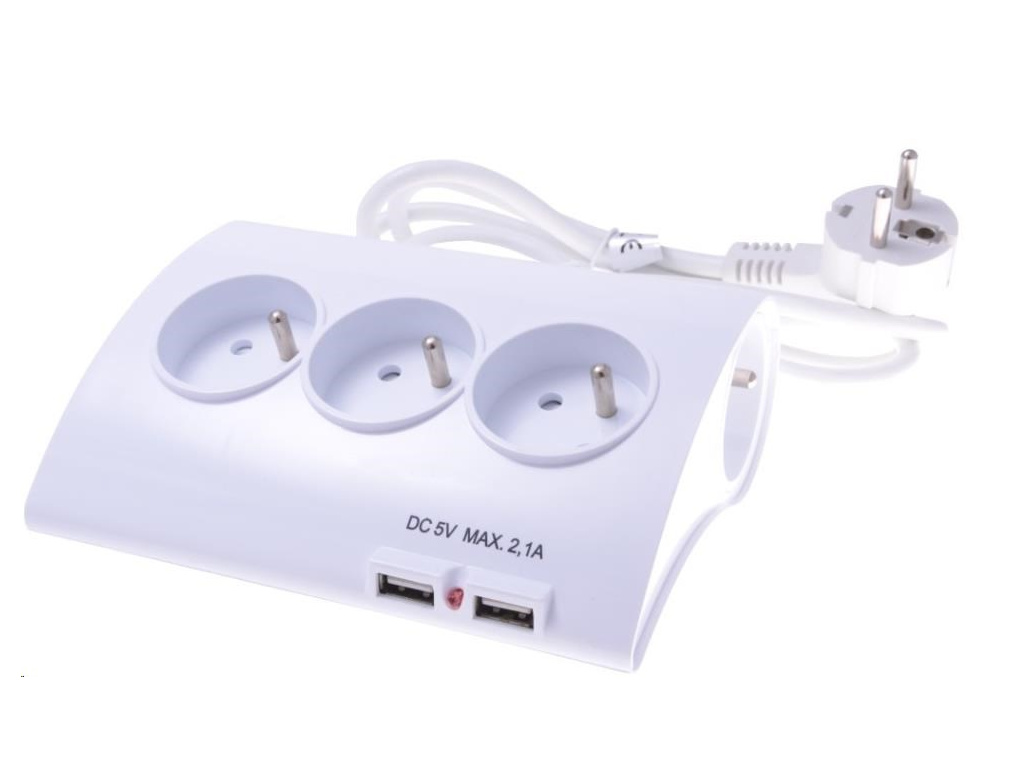 PremiumCord Prodlužovací přívod 230V 1,5m 5zásuvek+vypínač+2x USB nabíjecí proud 2A - Počet zásuvek:5 , 2 zásuvky z boku, 3 zásuvky nahoře - 2x USB port pro nabíjení proudem až 2.1A - Max.napětí: 250 V, max. 16A - Kolébkový vypínač umístěný zezadu. - Led kontrolka pro zapnutí - Dětská pojistka - Proudová pojistka - Barva: bílá - Baleno v PE sáčku se závěsným systémem. - Délka kabelu:1,5mEAN: 8592220017255