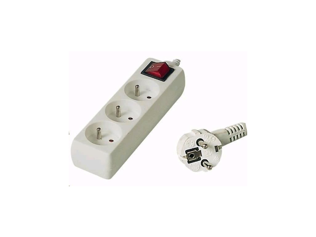 PREMIUMCORD Prodlužovací přívod 230V 2m, 3 zásuvky + vypínač, bílá, pp3k-02