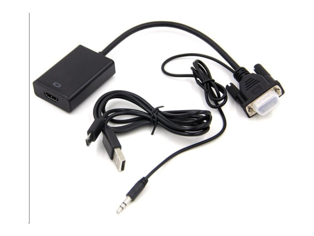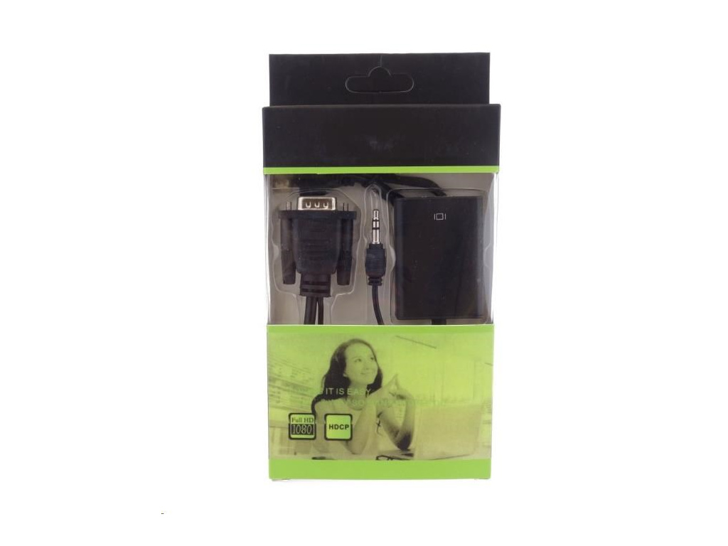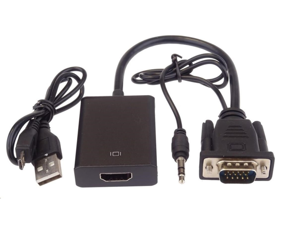 - Vstupy: VGA DB15HD male, AUDIO stereo jack male