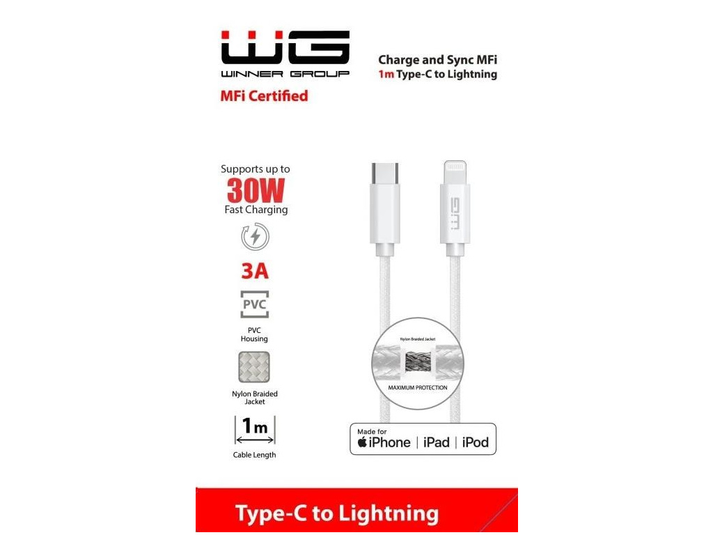 WG - Datový kabel Lightning Mfi na Type-C, 1 metr, 3A, bílá, 8108