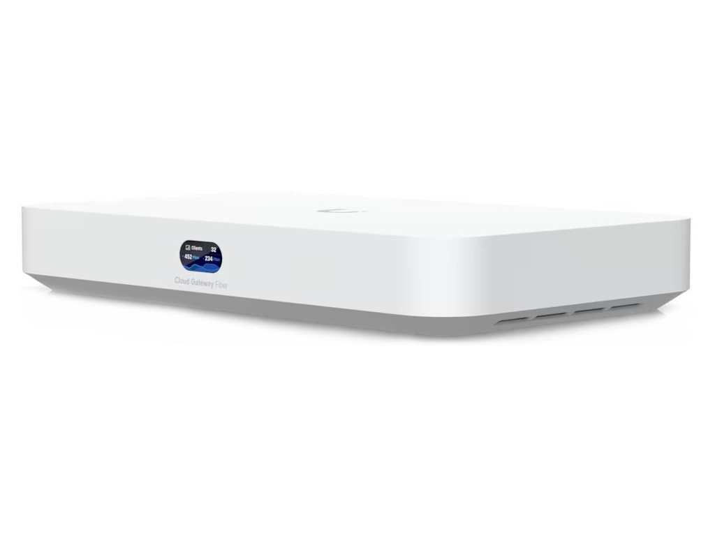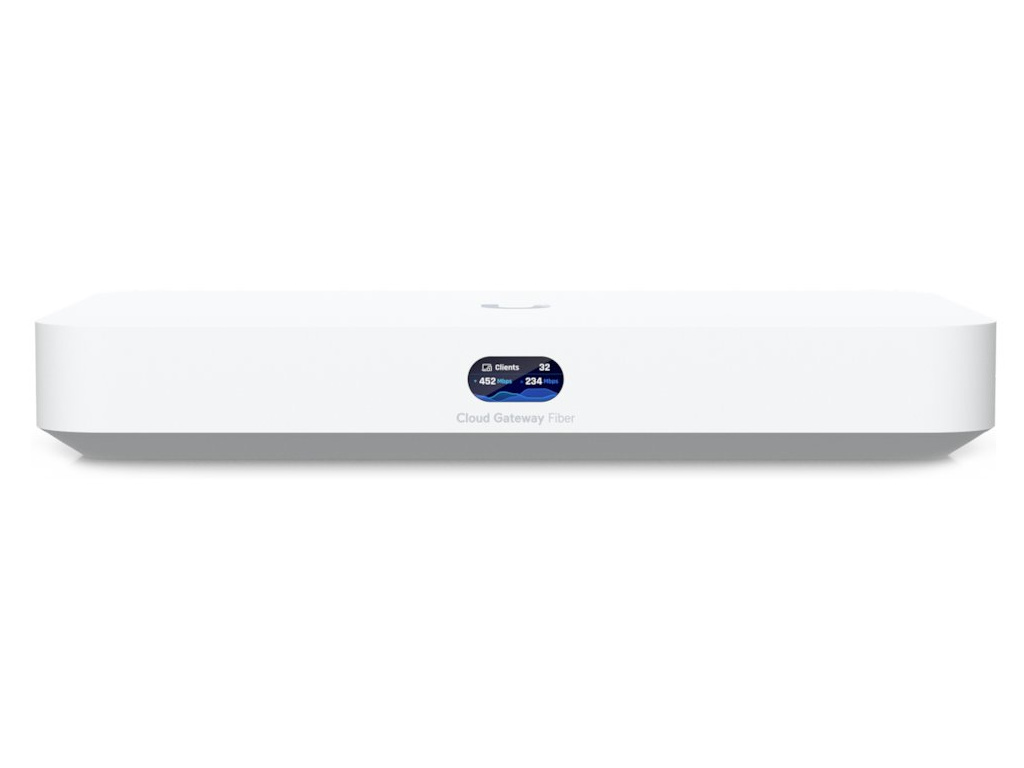 UniFi Cloud Gateway Fiber je vybavena dvěma porty WAN (10GbE RJ-45, 10GbE SFP+), jedním 10Gb SFP+ portem a čtyřmi LAN (2,5GbE RJ-45) porty, které zajišťují vysokorychlostní připojení potřebné pro podporu většiny aplikací náročných na šířku pásma. Vyniká také jako kompaktní řešení zabezpečení sítě, které nabízí kompletní sadu funkcí pro minimalizaci hrozeb, včetně systémů detekce a prevence narušení (IDS/IPS), filtrování obsahu a segmentace provozu na základě VLAN. Disponuje 0,96" LCM displejem, který zobrazuje aktuální stav připojených zařízení.