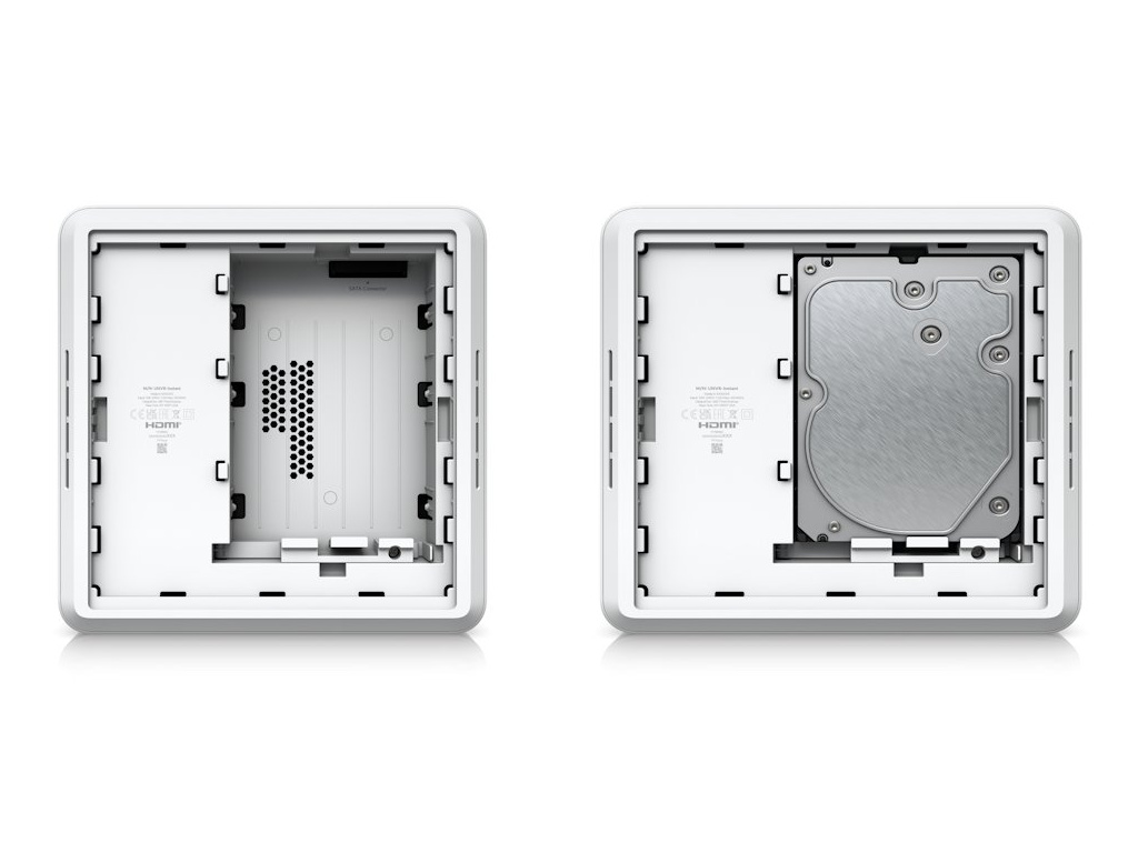 Zařízení je vybaveno výkonným quad-core ARM Cortex-A55 procesorem (1.7 GHz), 4 GB operační pamětí a slotem pro jeden 3.5" HDD disk. Kompaktní provedení 220 × 220 × 47 mm umožňuje instalaci na stěnu nebo na DIN lištu. Pro připojení ke kamerové síti vyžaduje UniFi Gateway nebo Layer 3 switch pro přidělování IP adres.