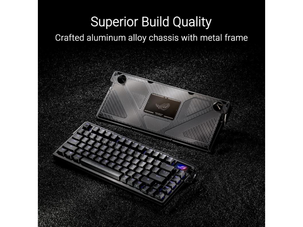 ROG Azoth Extreme je přizpůsobitelná 75% herní klávesnice s prémiovým šasi z hliníkové slitiny a kovovým rámem. Vyznačuje se rychlostí hlášení 8000 Hz s ROG Polling Rate Booster a více než 1600 hodin výdrže baterie v bezdrátovém režimu ROG SpeedNova 2,4 GHz. Vylepšený OLED dotykový displej a třícestný knoflík umožňují monitorování systému a rychlé nastavení. Polohovací deska z uhlíkových vláken zajišťuje ostrý zvuk při psaní, zatímco tři tlumicí vrstvy absorbují vibrace. Nastavitelný držák těsnění s pádlovým spínačem nabízí dvě možnosti psaní.