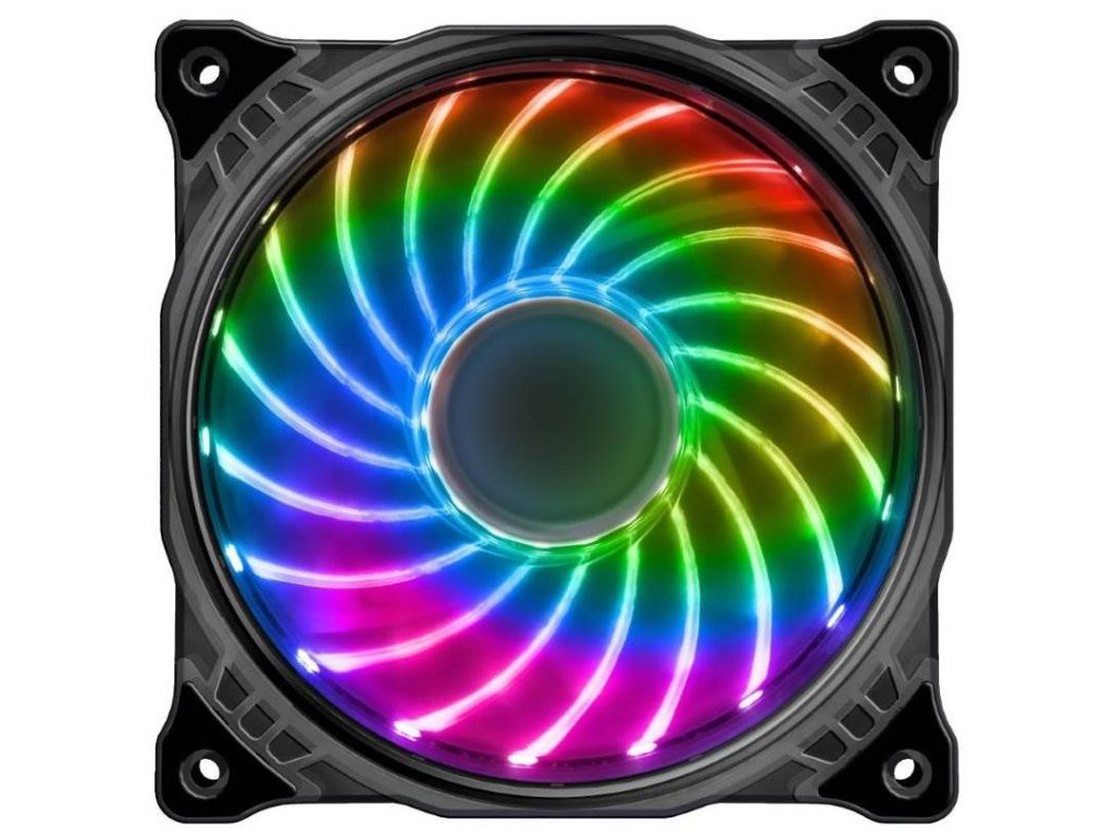 Přídavný 12 cm ventilátor s RGB LED podsvícením a antivibračními držáky. Rozsviťte svou PC skříň různými barvami s duhovým efektem. Možnost dokoupení dálkového ovládání.