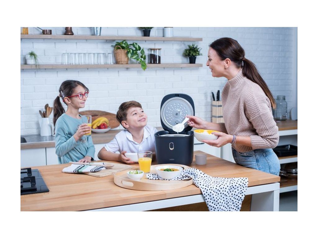 Designově vyladěný Lauben Low Sugar Rice Cooker 3000AT představuje ideální řešení pro velkou rodinu. Jídla připravíte s minimem tuku a nepřipálí se. Jeho 3l nádoba s prémiovým nepřilnavým keramickým povrchem se snadno udržuje, stačí ji vložit do myčky. Ovládání rýžovaru je velmi jednoduché prostřednictvím digitálního dotykového displeje. Pro zajištění bezpečnosti je přístroj vybaven ochranou proti přetečení díky mikrotlaku a technologií Cool Touch zajišťující, že se o vnější plášť nikdo nepopálí.
