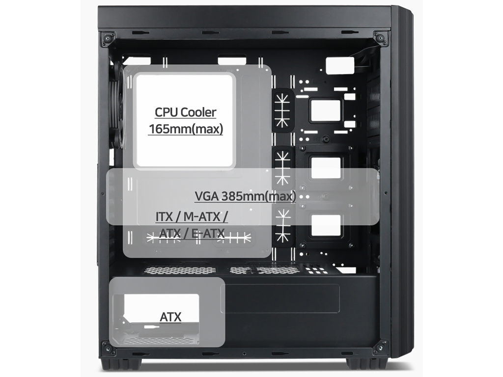 Podporuje základní desky: E-ATX, ATX, Micro ATX, mini - ITX