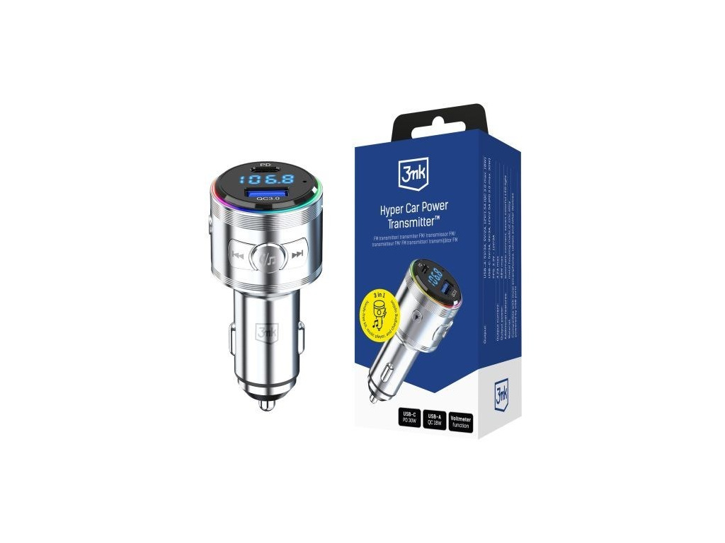 3mk Hyper Car Power Transmitter 48W QC PD PPS USB 1C1A Silver, 5903108636247