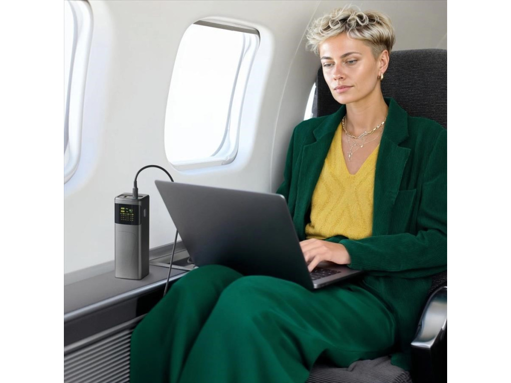 - rychlé nabití powerbanky přes USB-C konektor za 2,1 hodiny pomocí přiloženého USB-C kabelu vhodného pro výkon až 240 W (délka 0,5 m)