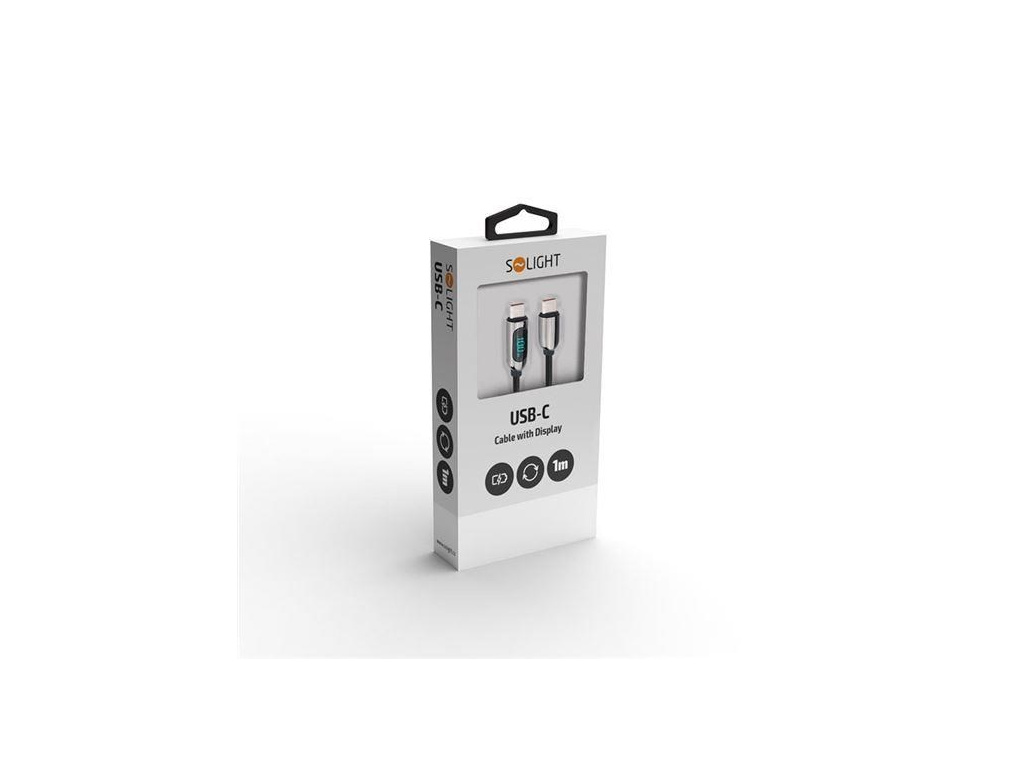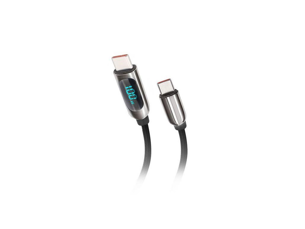 Solight USB-C kabel s displejem, USB-C konektor - USB-C konektor, 100W, 1m, SSC1801