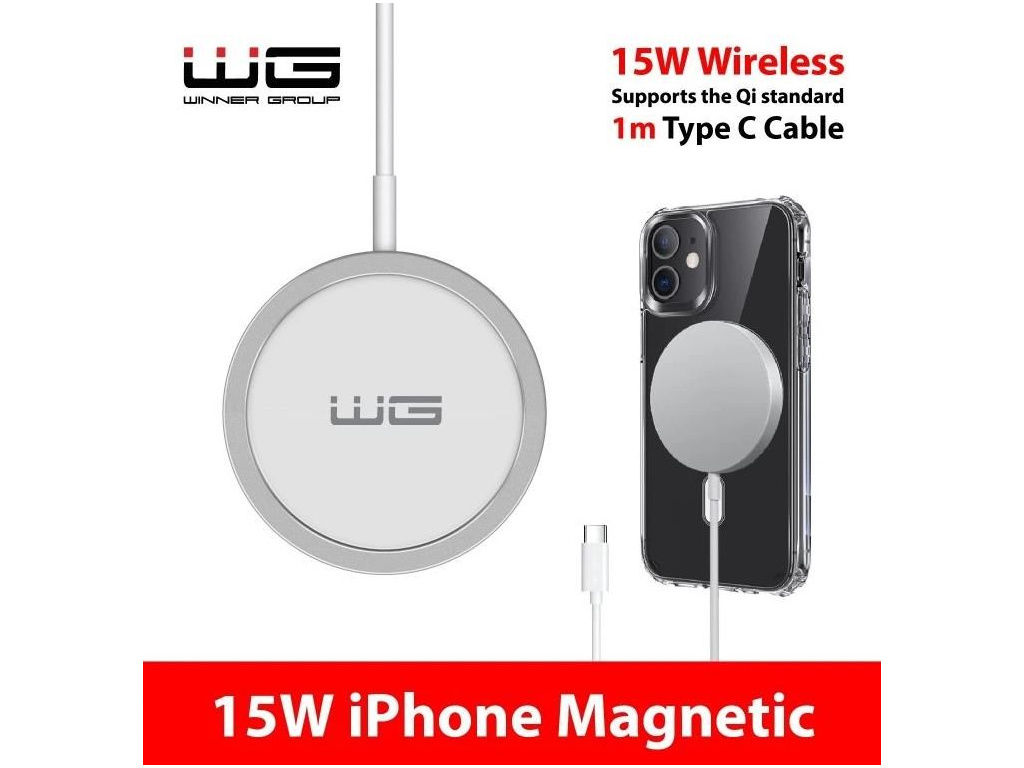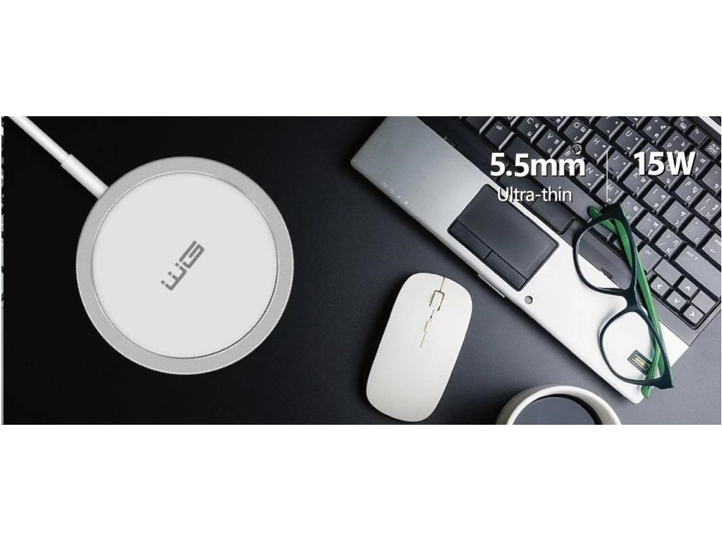 WG - Bezdrátová nabíječka FAST MAGNET 15W, kulatá, bílá, 8949