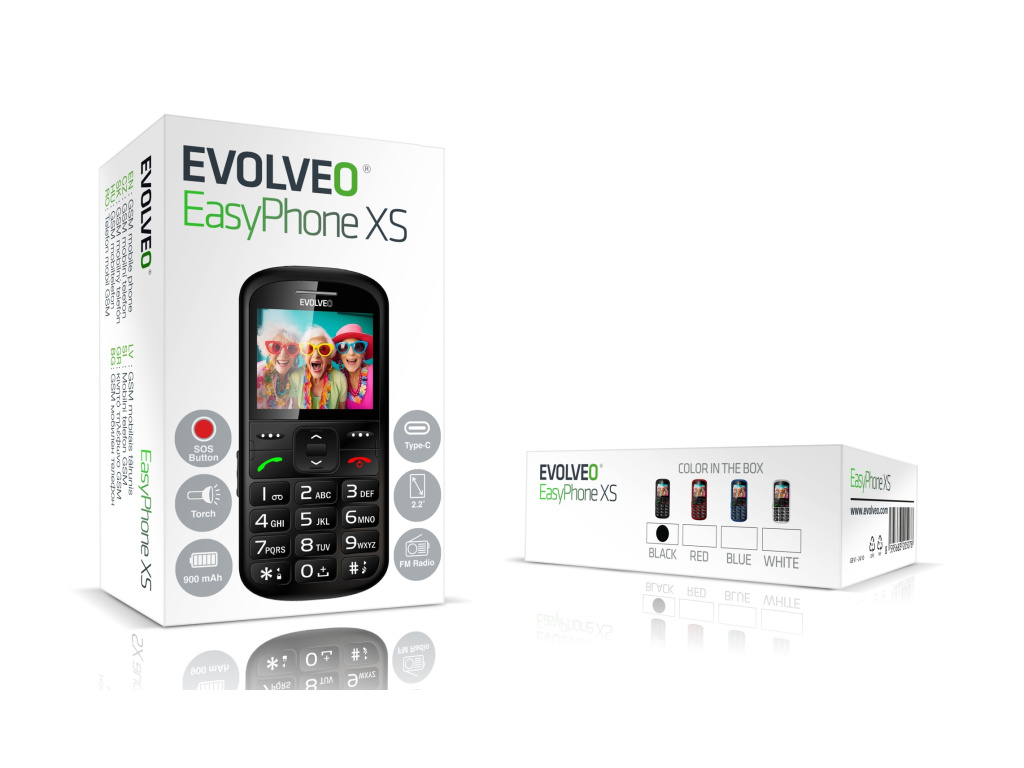 • EVOLVEO originální baterie 900 mAh pro EasyPhone XS (EP-570) (PartNo: EP-570-XS-BAT) • EVOLVEO univerzální nabíječka USB-C pro mobilní telefony, černá (PartNo: CHARGER-USBC2)BAREVNÉ PROVEDENÍ
