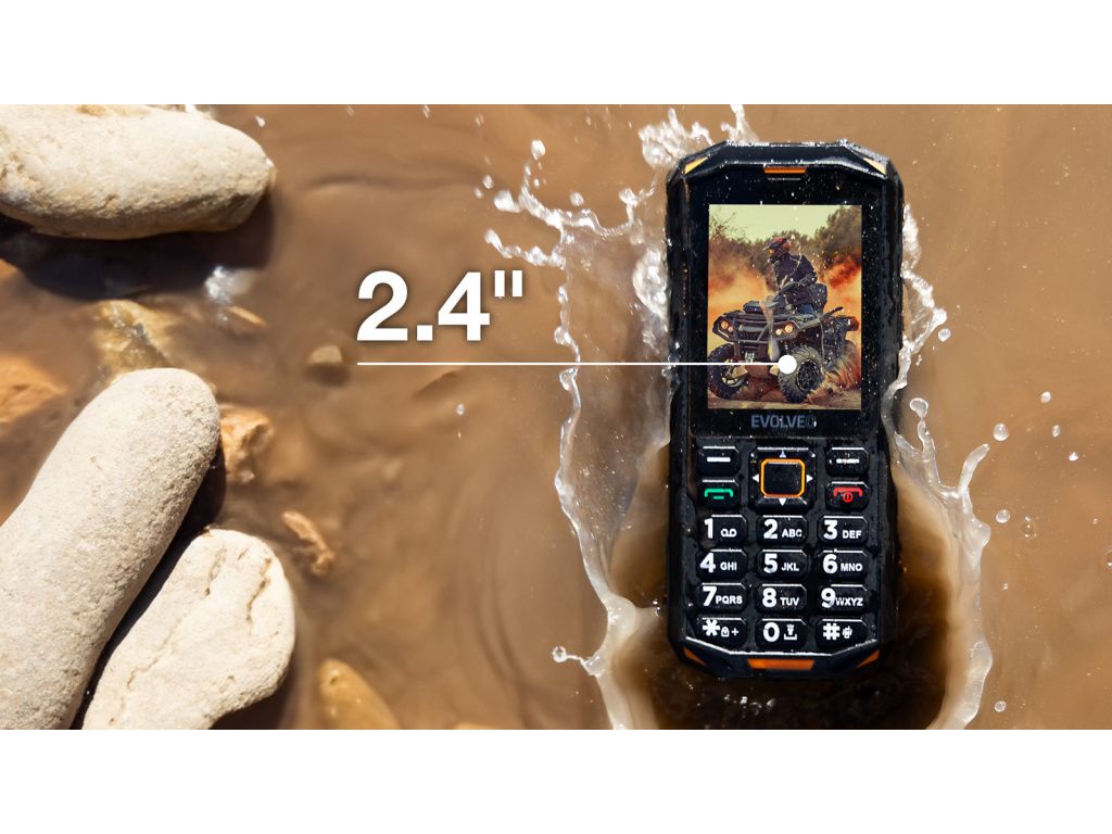 • Displej 2,4” • Dual SIM • USB-C (Type-C) nabíjeci konektor • Odolnost IP68 • Pogumovaný odolný povrch • Baterie s kapacitou 2500 mAh • Čtečka elektronických knih • Silná svítilna • SOS tlačítko • FM tuner