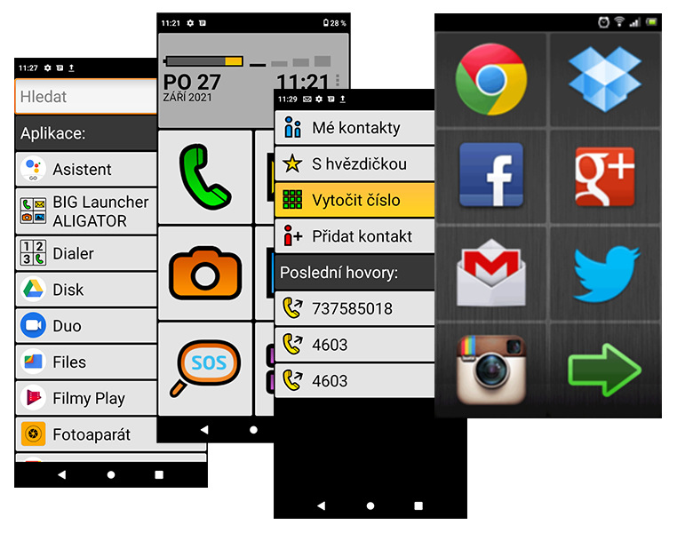 Aligator nasadil oceňovanou nadstavbu BIG Launcher, díky níž je snadné telefon obsluhovat pro naprosté začátečníky i seniory stejně jako pro osoby se zrakovým postižením nebo omezením motoriky. Prostředí je výborně čitelné a navrženo tak, aby se s ním během pár minut sžil naprosto každý – přesto nabízí vše důležité.