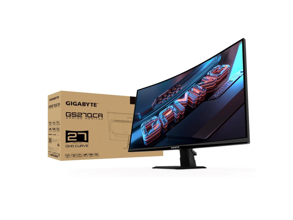 GIGABYTE LCD - 27" Gaming monitor GS27QCA, Prohnutý VA 1500R, 2560x1440 QHD, 180Hz, 5000:1, 250cd/m2, 1ms, 2xHDMI, 1xDP, GS27QCA
