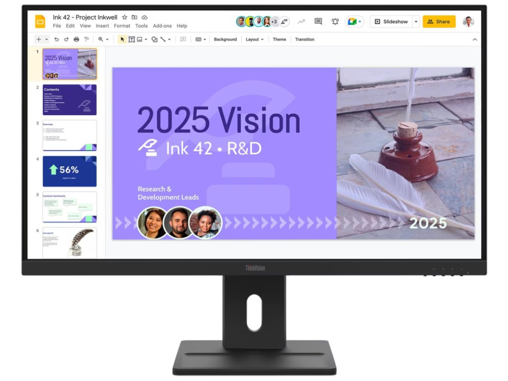 Monitor ThinkVision E27Q-40 kombinuje vysoké QHD rozlišení 2560 × 1440 px s kvalitním IPS panelem pro přesné barevné podání a široké pozorovací úhly 178°/178°. Díky 100Hz obnovovací frekvenci a rychlé odezvě 4 ms poskytuje plynulý obraz při práci i zábavě.