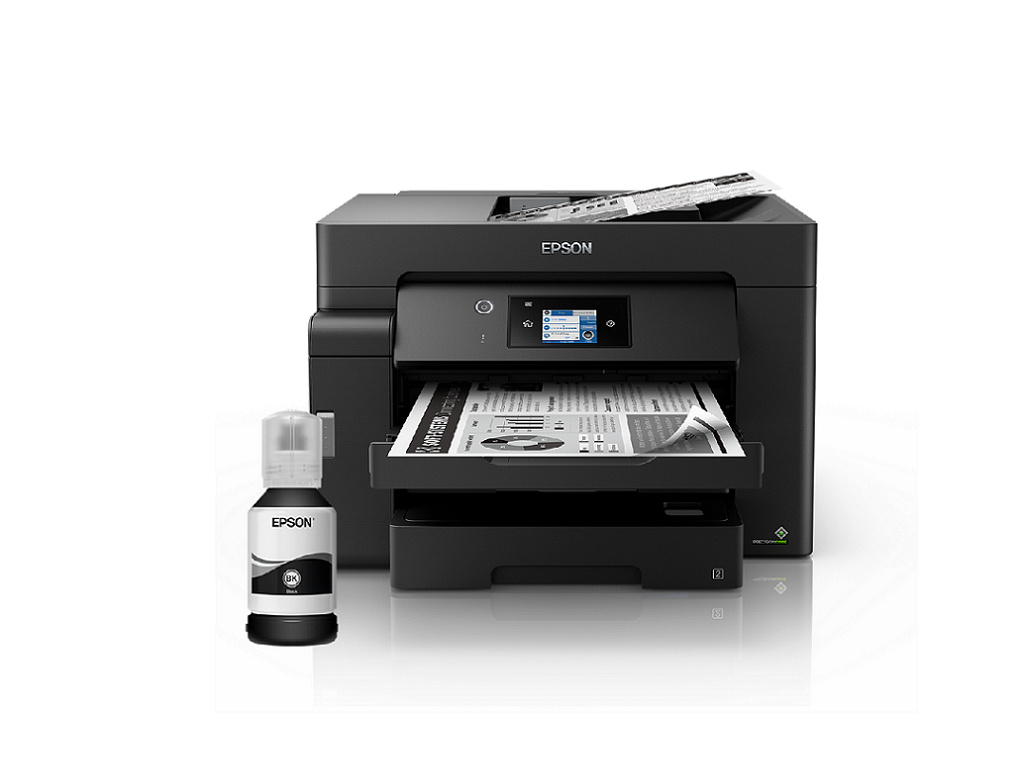 Tisk do formátu A3+ s touto rychlou a funkcemi bohatě vybavenou tiskárnou EcoTank pro firmy. Nabízí nízké náklady na stránku, zásobník o kapacitě 550 listů a ADF o kapacitě 50 listů. Tato černobílá tiskárna EcoTank s množstvím funkcí je určena uživatelům v menších kancelářích a firmách, usnadňuje tiskové úlohy do formátu A3+ a nabízí nízké náklady na stránku. Tiskové úlohy do formátu A3+ lze zvládat rychle díky vysoké rychlosti tisku a skenování, dvěma předním zásobníkům na 250 listů A3, zadnímu podavači na 50 listů A3 a automatickému podavači dokumentů s kapacitou 50 listů A3. Díky funkcím mobilního tisku, Ethernet připojení a dotykovému LCD displeji s úhlopříčkou 6,8 cm můžete tisknout tak, jak právě potřebujete.Tisková hlava PrecisionCore™