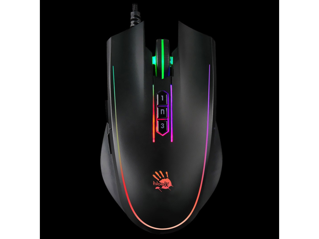 A4tech Bloody Podsvícená herní myš P81S Activated, 8000 DPI, USB, Core 3, černá, P81S-CURVE