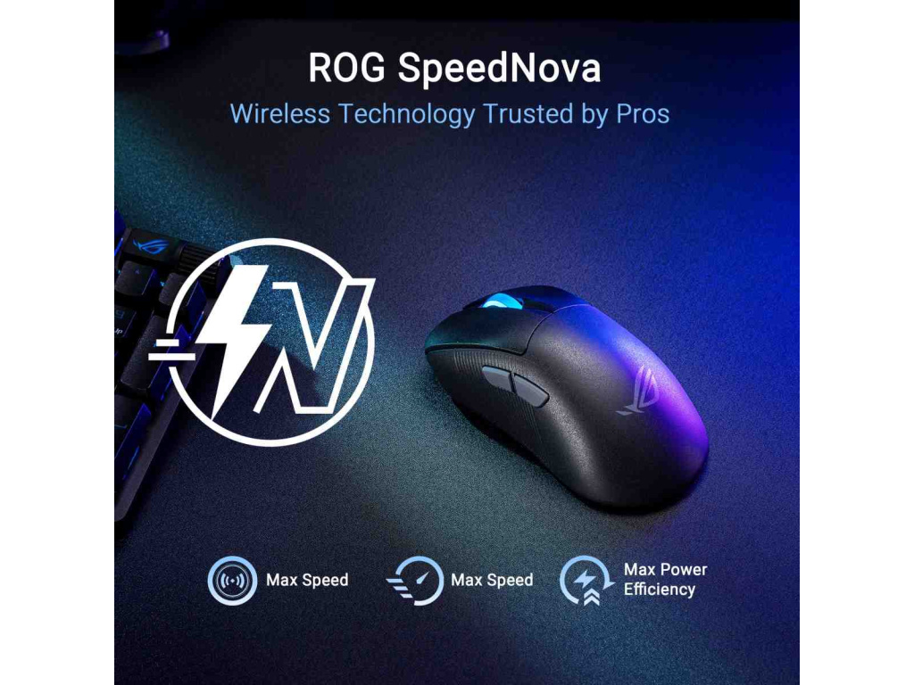 - Bezdrátová technologie ROG SpeedNova: Spolehlivý bezdrátový 2,4 GHz RF výkon s nízkou latencí a optimalizovaná energetická účinnost