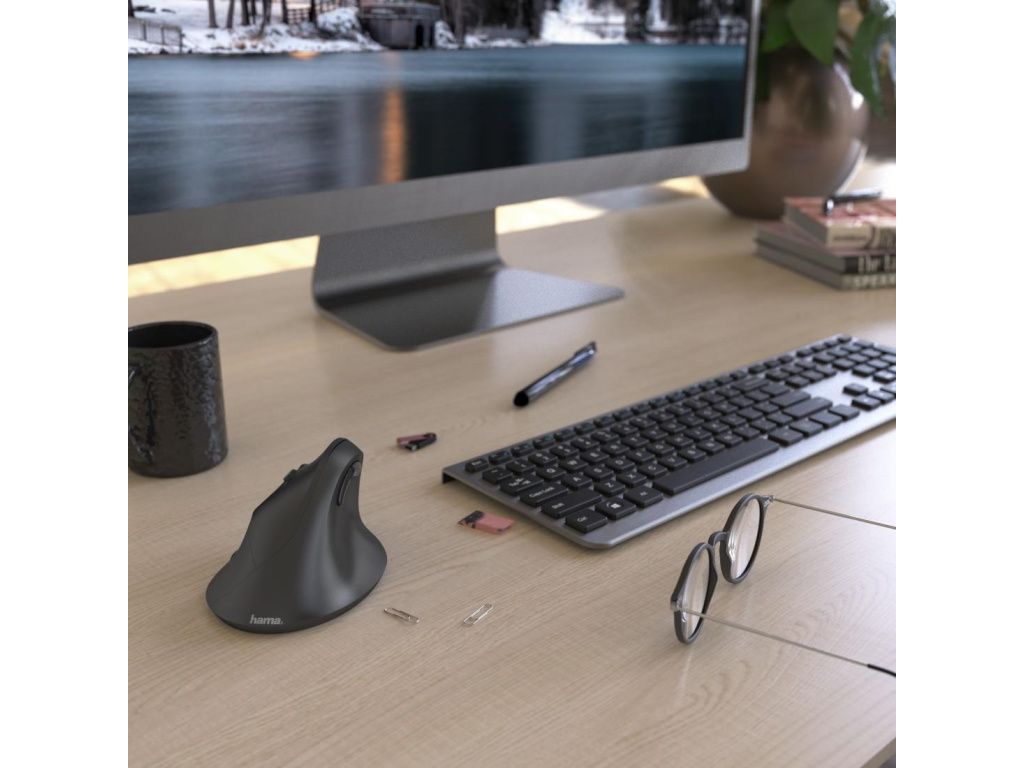 Hama vertikální ergonomická bezdrátová myš EMW-500L, pro leváky, černá, 182697