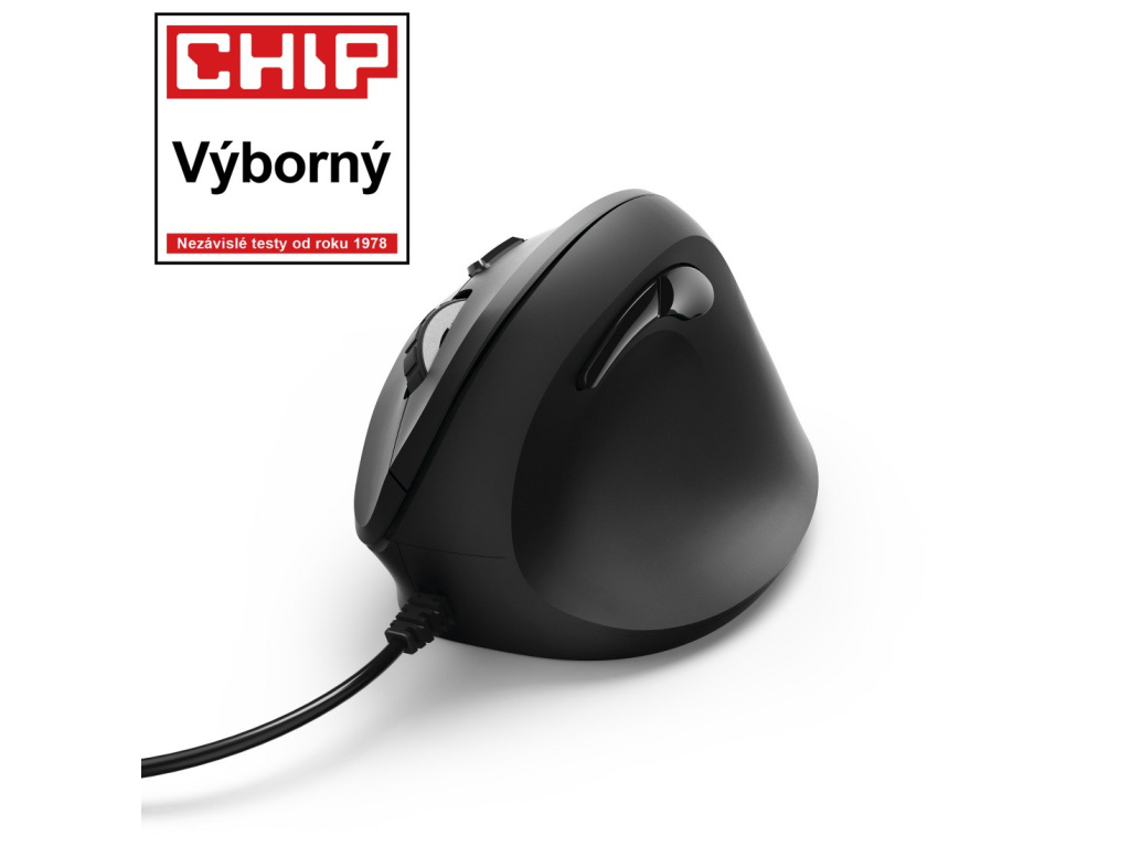 moderná ergonomická káblová myš pre pracovanie s počítačom bez bolesti - vertikálne prevedenie predchádza presileniu a bolesti ramien a zápästí - DPI tlačidlo pre rýchlu zmenu rozlíšenia (DPI 100/1400/1800) - optický senzor pre presný a plynulý pohyb myši - Browser tlačidlá pre podporu funkcie vpred/vzad na internete - pogumovaný povrch pre lepší úchop - viac komfortu, ergonómie a prirodzené držanie pri práci s myšou - Smart link technológia – jednoduchá prevádzka Systémové požiadavky: - operačný systém: Windows 10/8/7/ Vista, Mac OS 10.10 alebo vyššie Technické parametre: - pripojenie: USB A vidlica - počet talčidiel: 6 vrátene rolovacieho kolieska - rozlíšenie: 1000/1400/1800 DPI - rozmery: 8,6 x 11,5 x 7,1 cm - dĺžka kábla: 180 cm - farba: čiernaEAN: 4047443370372