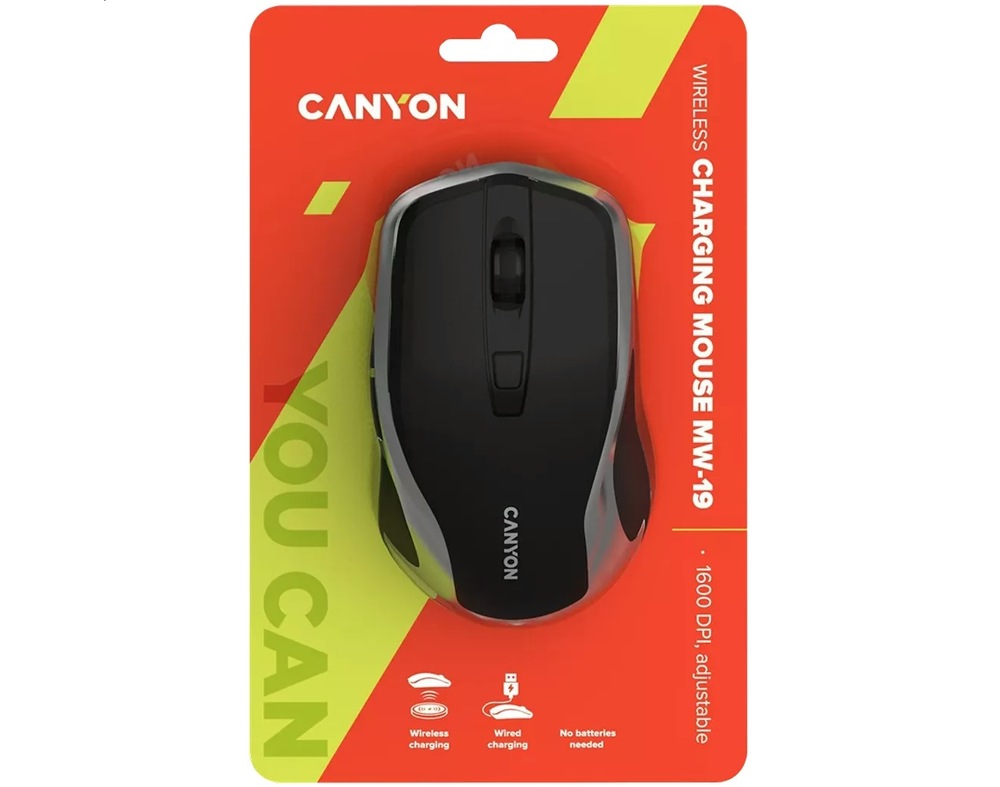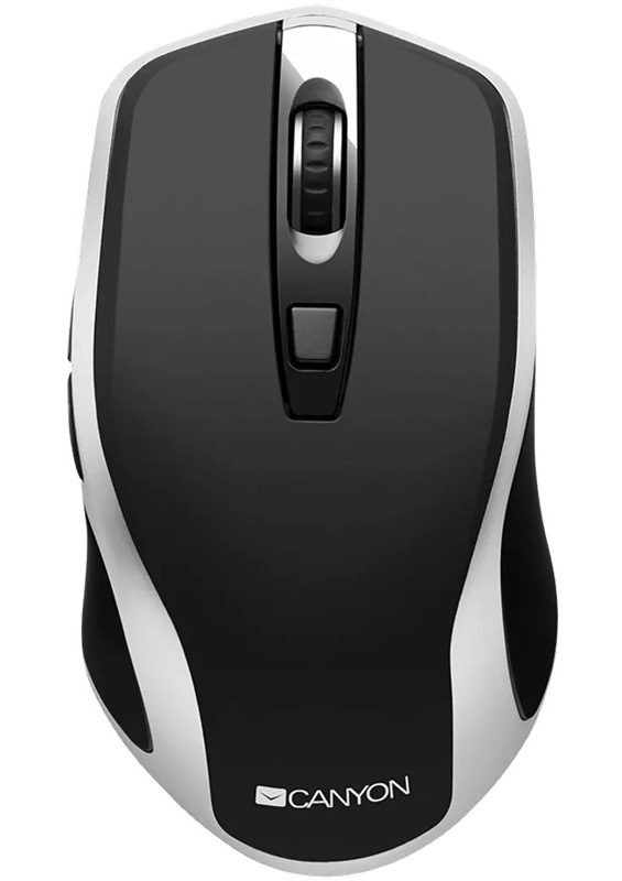 CANYON optická silent myš s bezdrátovým nabíjením, senzor Pixart, rozlišení 800/1200/1600DPI, 6 tlačítek, černo-stříbrná, CNS-CMSW19B_EU