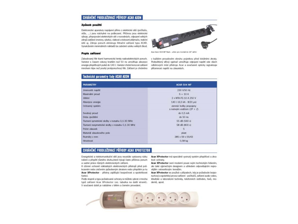 PŘEHLED Přepěťová ochrana Acar 504 WF Rack