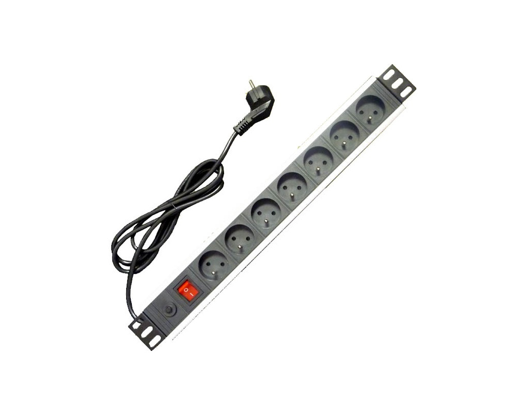 19'' napájecí panel 7x220V-1,8m PPO Black+přep.ochr.16A, 9610